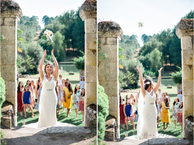 We were very excited for the wedding. We were drawn to SW France for its culture and weather, and we were lucky that we had glorious sunshine and blue skies on our wedding. The venue was as beautiful as we remembered it from our brief visit. We remembered the beautiful decor indoors and vast outdoor area for plenty of photos. We ended up choosing a colour theme of navy, gold and blush pink, our decor was combined with rustic and glam, a crazy combination, but it worked thankfully. Our various outfits (traditional Chinese and western) all came together with the decor and Elena caught it all beautifully. She stayed with us for a good 12 hours for the whole day.